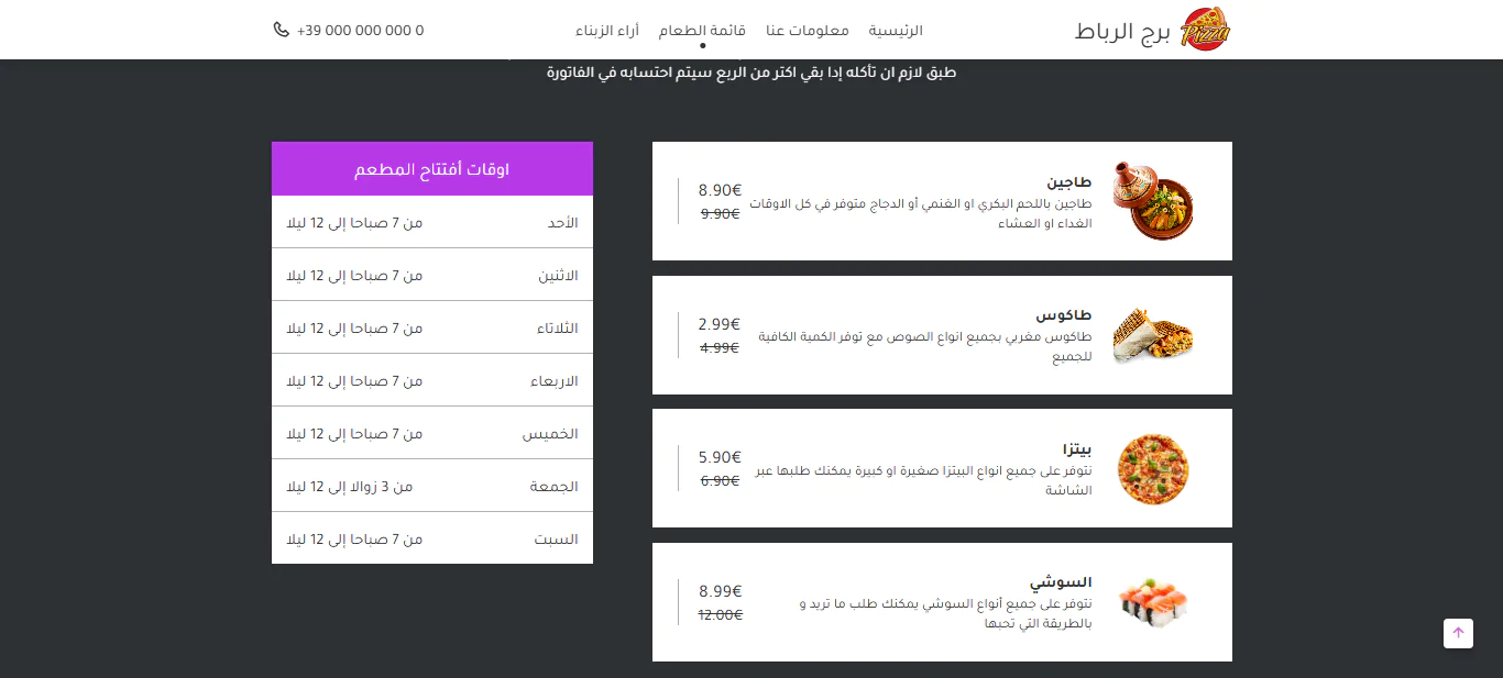 برج الرباط - قالب HTML لمطعم - قالب html مميز واحترافى من صفحة واحدة بنظام سلايد سكرول, يأتى القالب كامل
