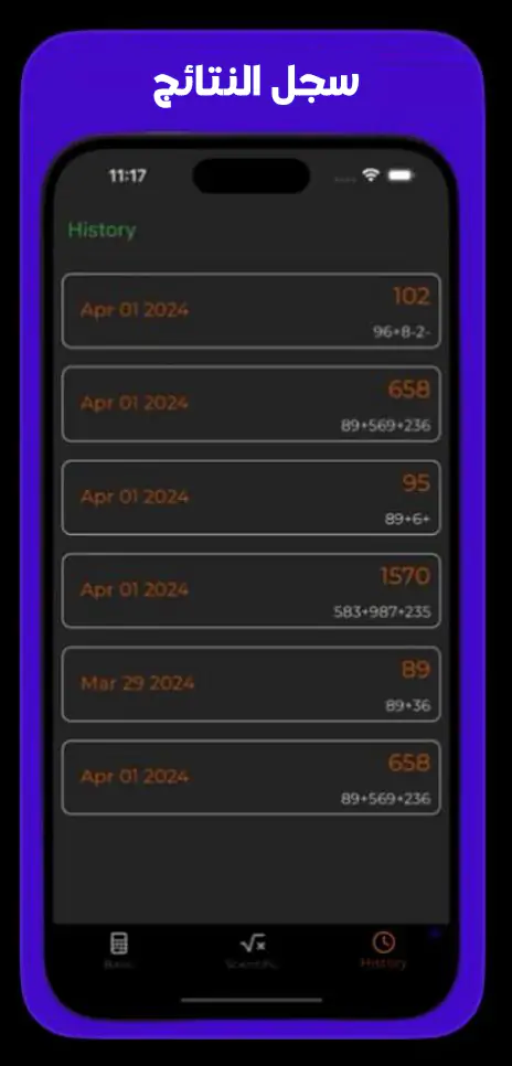 ✅ شاشة سجل العمليات لعرض الحسابات السابقة