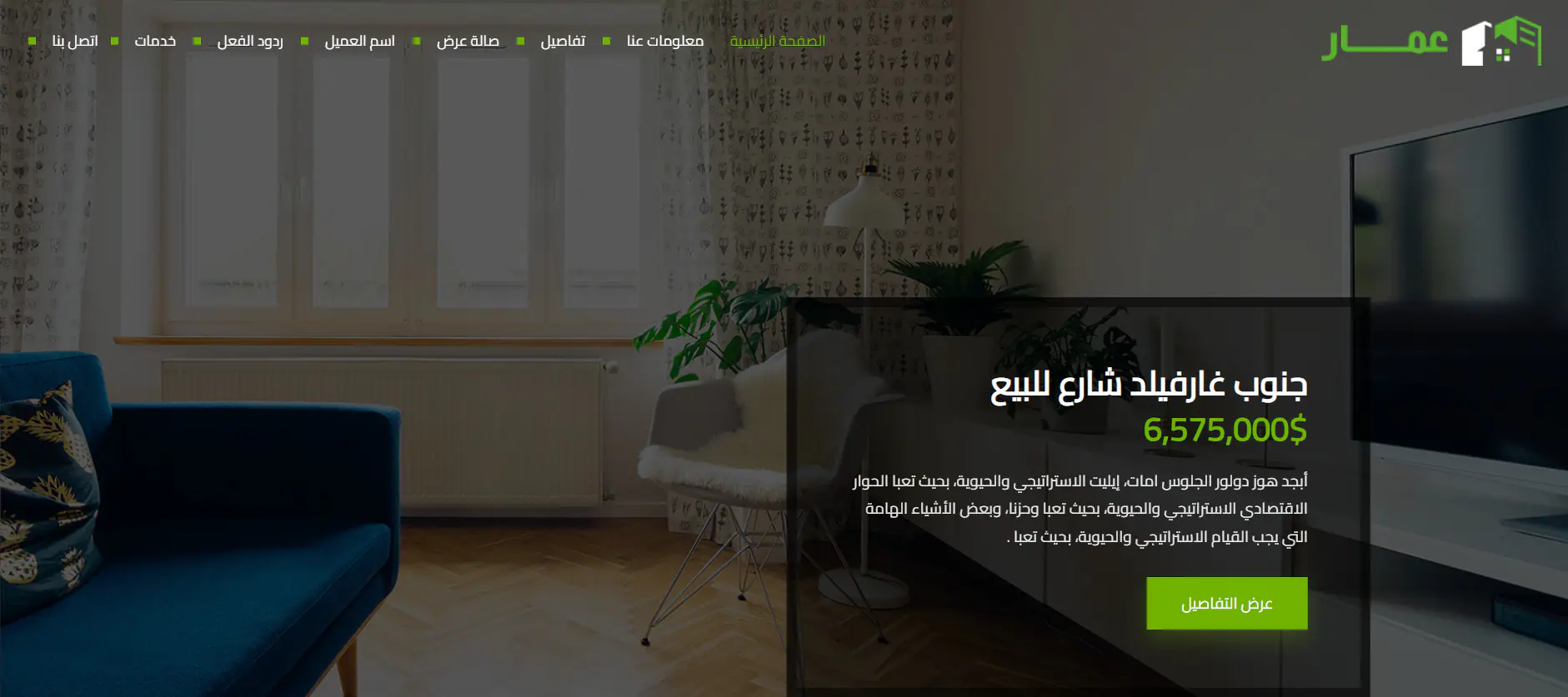 عمار - قالب HTML عقارى من صفحة هبوط واحدة متعدد اللغات ومتجاوب مع جميع المتصفحات وأحجام الشاشات المختلفة.