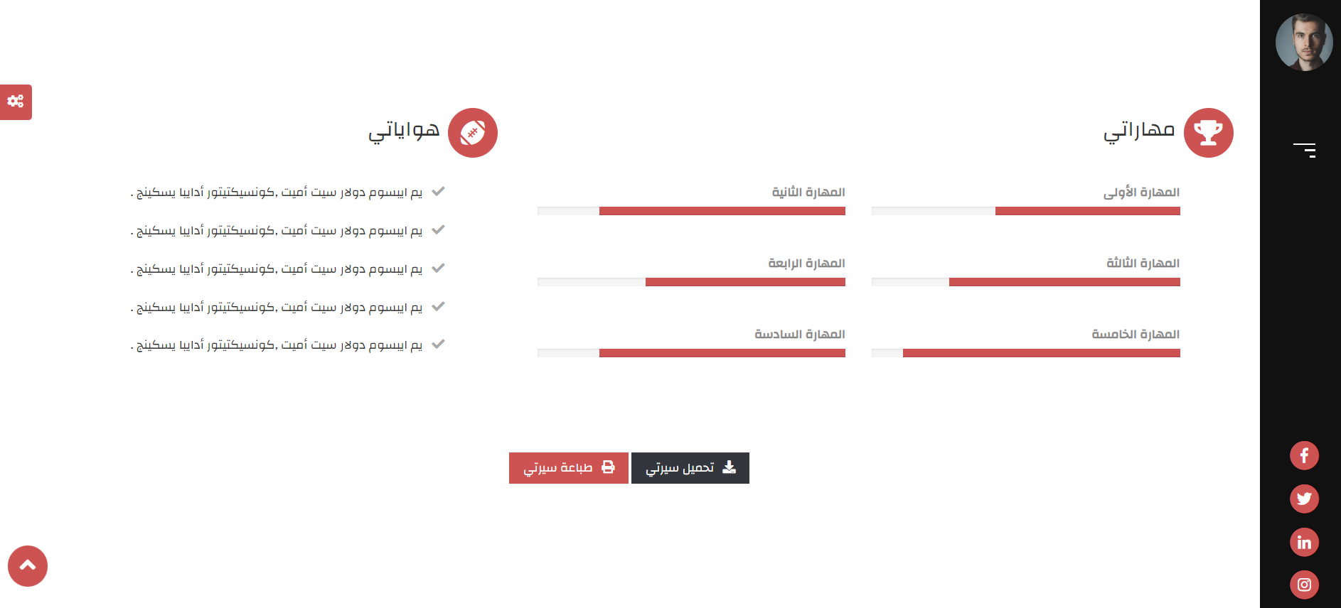 افاقى - قالب html مخصص للسيرة الذاتية - قالب افاقى مناسب لأى شخص يريد عرض سيرته الذاتيه بشكل احترافى عبر الانترنت للوصول لاكبر عدد ممكن من الاشخاص المستهدفين.