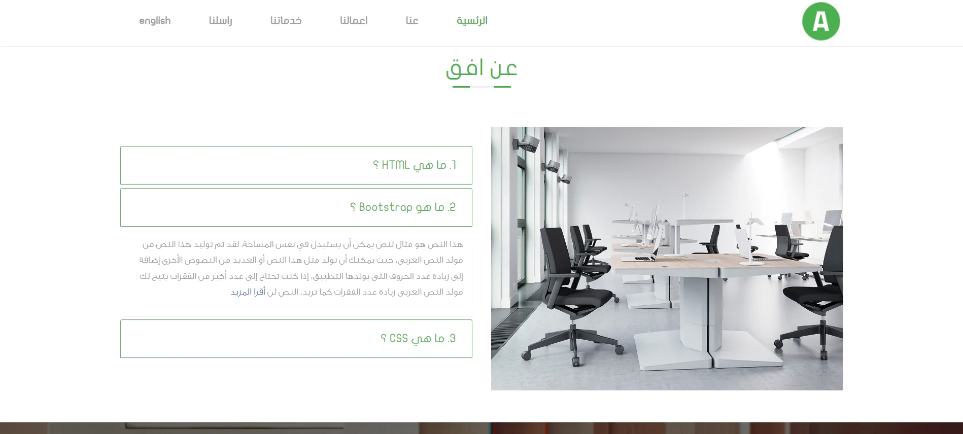 أفق - قالب من صفحة واحدة يستخدم للشركات وللأشخاص للتعريف بمنتجاتهم فهو قالب ذو صفحة واحدة ويمكن استخدامه كصفحة هبوط. القالب مصمم بأحدث تقنيات الويب وفقا للمعايير القياسية ومتوفر باللغتين العربية والانجليزية.