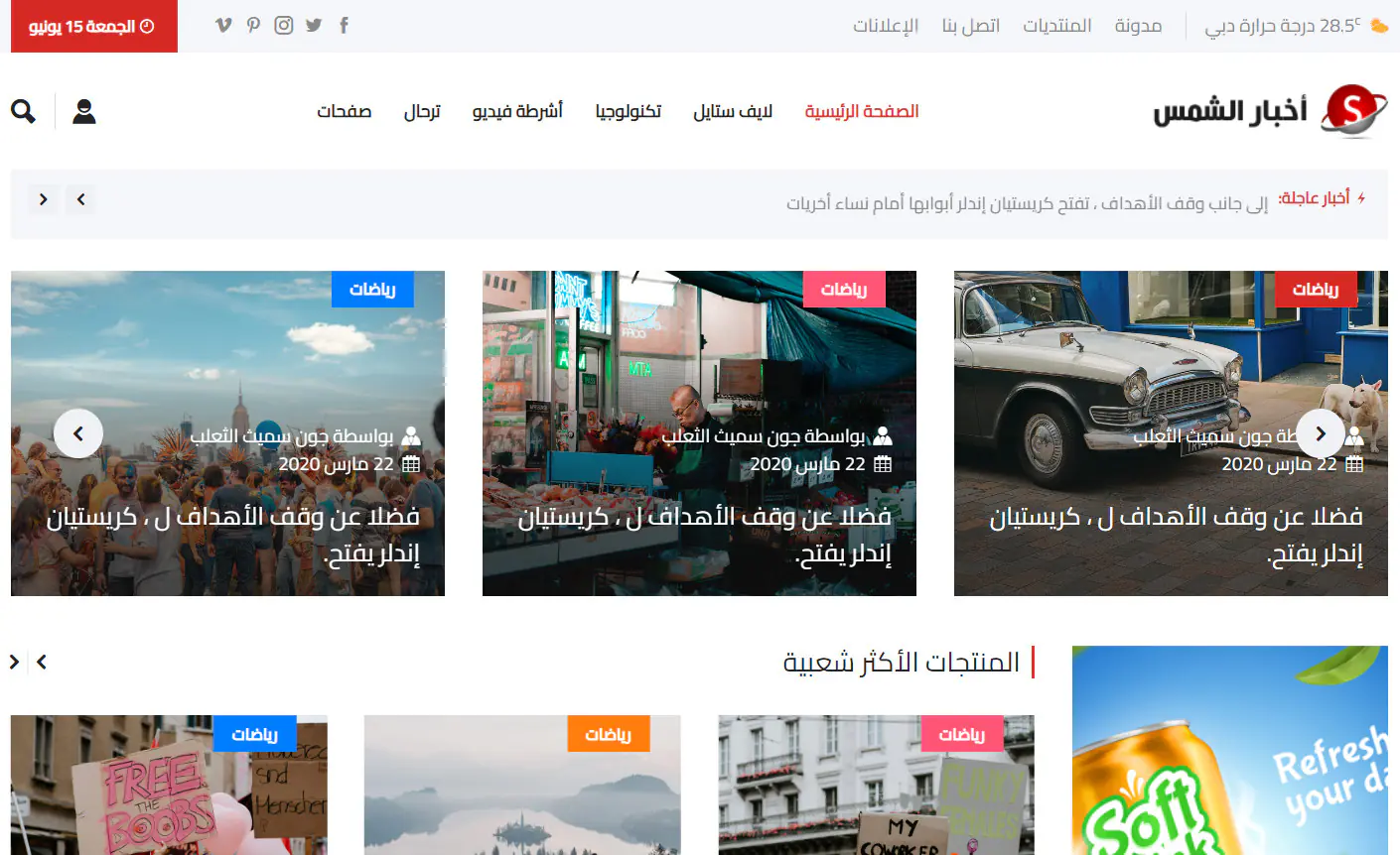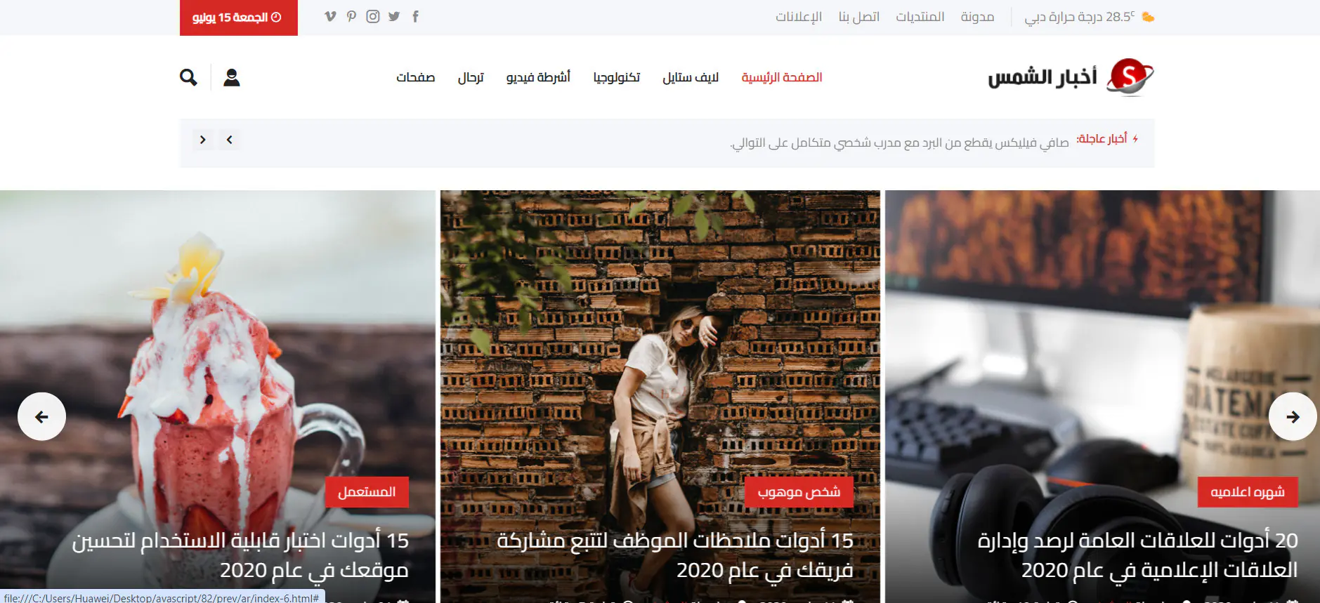 أخبار الشمس - قالب HTML أخبارى متعدد الصفحات , يصلح للمواقع الأخبارية والمجلات ومواقع تغطية الأحداث, القالب يحتوى على أكثر من 25 صفحة مصممة بجودة عالية وبدعم كامل Sass.