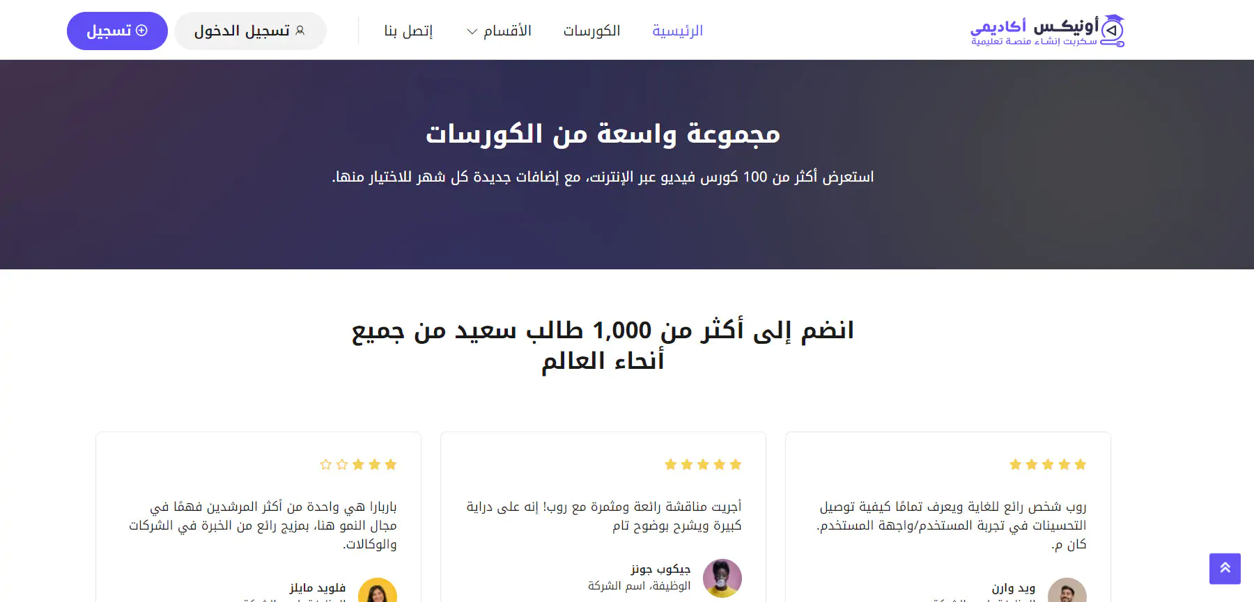 ابدأ رحلتك في عالم التعليم الرقمي اليوم مع اونيكس أكاديمي، واستمتع بمنصة متكاملة تساعدك على نشر معرفتك وتحقيق أرباح مستدامة بكل سهولة! 🚀