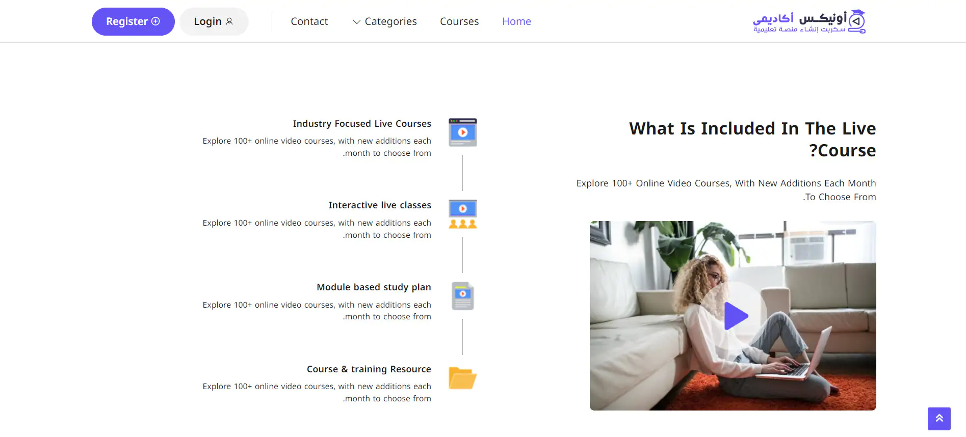 ✔ إمكانية إضافة دورات وفئات غير محدودة.