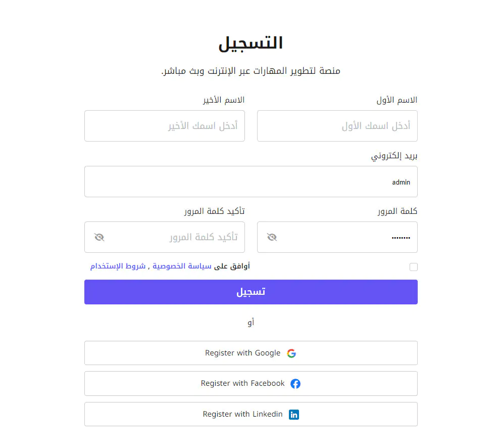 ✔ إمكانية إنشاء حسابات عبر الشبكات الاجتماعية لتسهيل تسجيل المستخدمين.