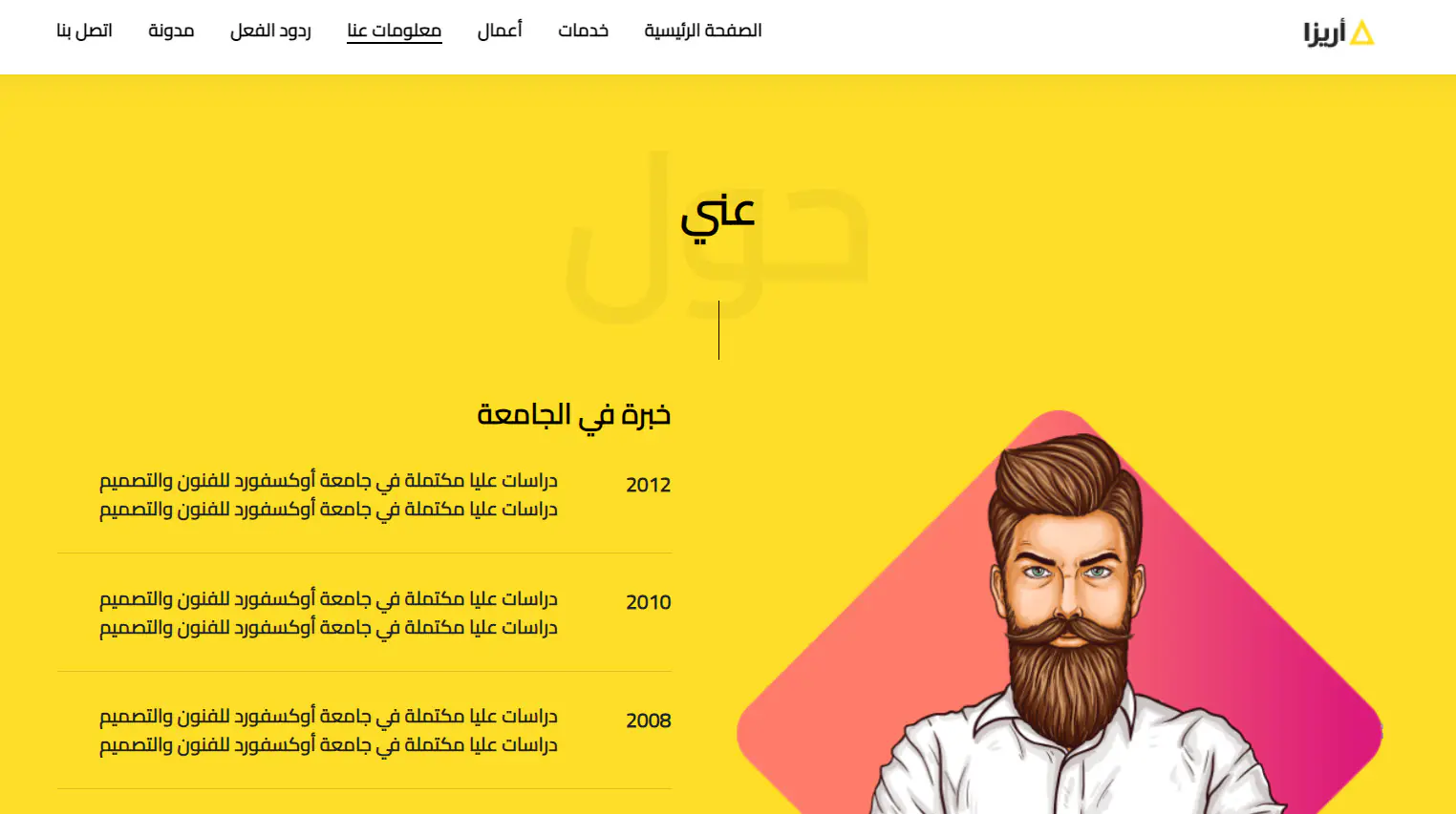أريزا - قالب HTML شخصى من صفحة واحدة بألوان جديدة ونمط جديد ثلث, متجاوب 100% ومتعدد اللغات