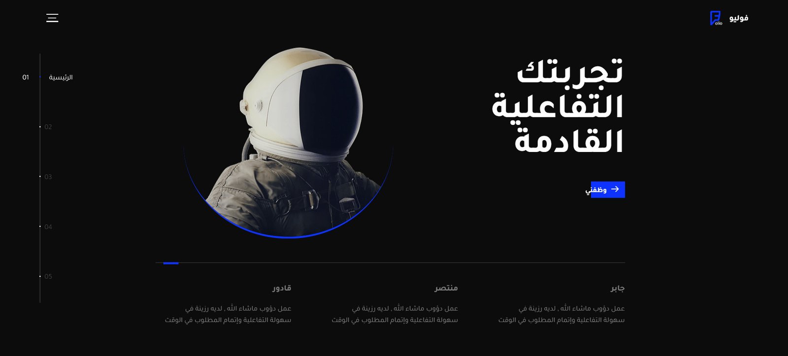 فوليو - قالب html شخصى من صفحة واحدة لإنشاء موقع تعريفى أو معرض أعمال يدعم الرتينا بشكل مميز وألوان مريحة .