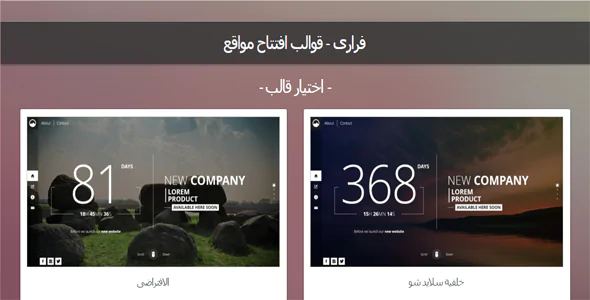 فراري - قوالب لافتتاح وإطلاق المواقع والمشاريع الجديدة. تم تصميم هذه القوالب لتناسب جميع الأذواق بأشكال متنوعة مثل خلفيات الفيديو، الصور، أو عروض الشرائح. تحتوي على قائمة بريدية، وعد تنازلي للأيام المتبقية، ومتوافقة بشكل انسيابي وجميل مع جميع الأجهزة.