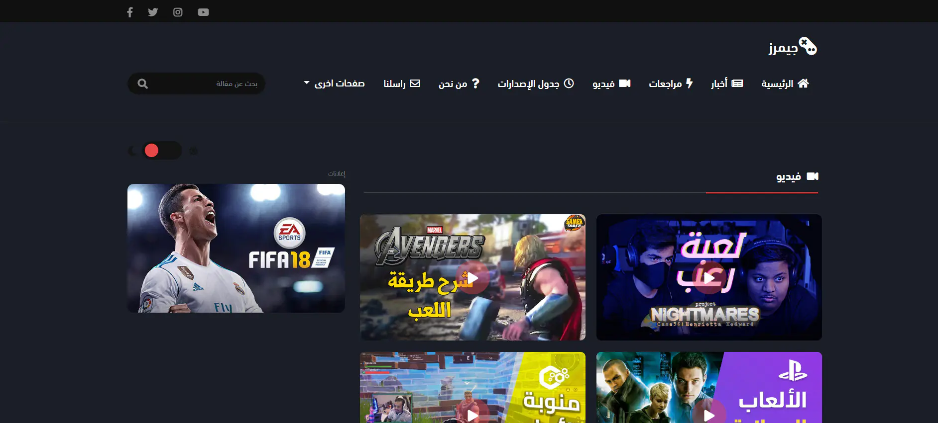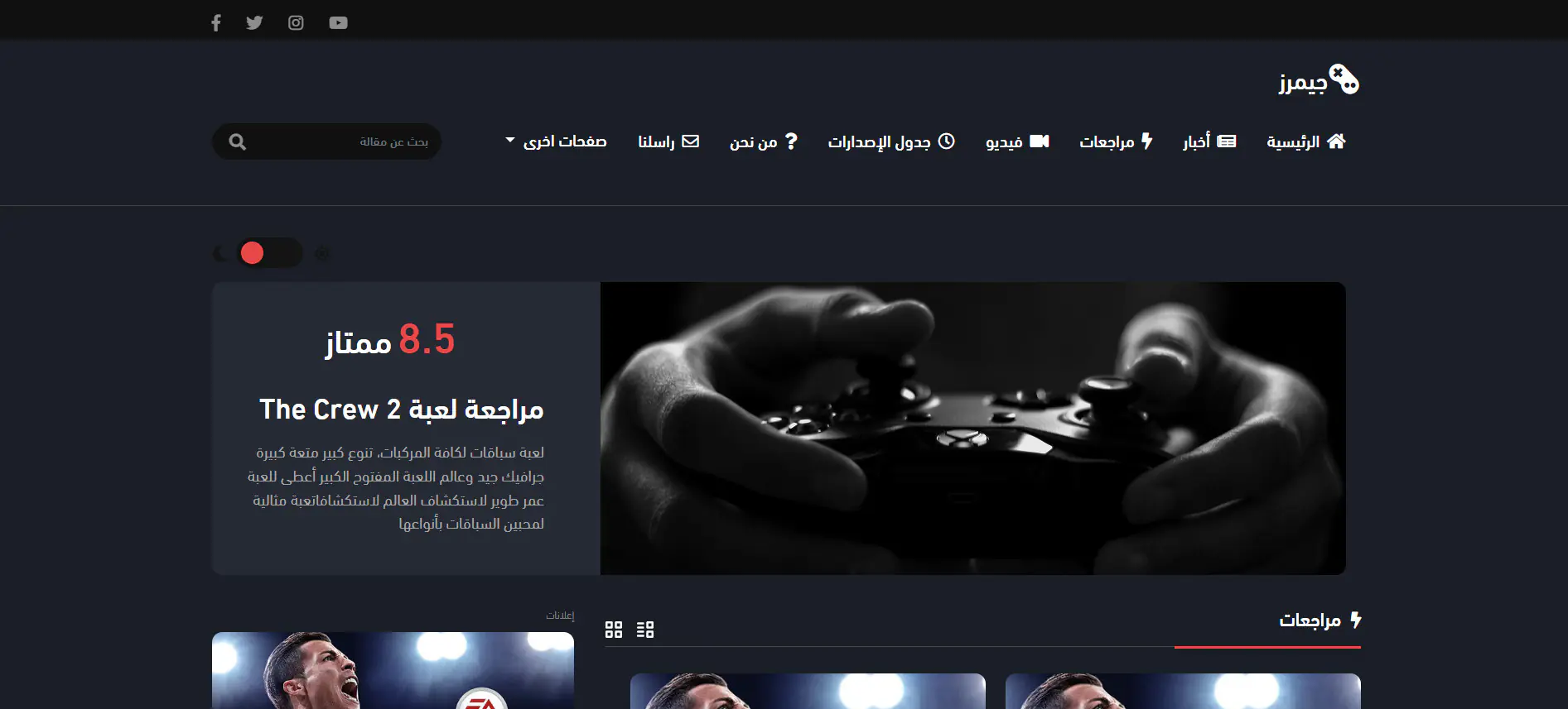جيمرز - قالب HTML للمواقع الأخبارية والمجلات ومواقع الألعاب العربية متعدد الصفحات بتصميم متجاوب وأنيق