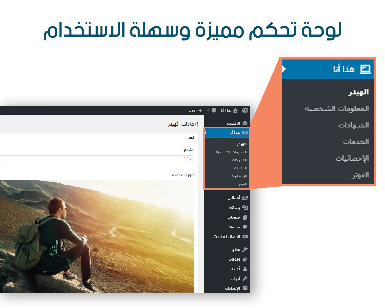 لا تحتاج لخبرة في البرمجة او معرفة مسبقة بالووردبريس لتعديل وتخصيص الصفحة، يمكنك من لوحة التحكم وبسهولة التعديل على كل جزء من الصفحة بسهولة تامة.
