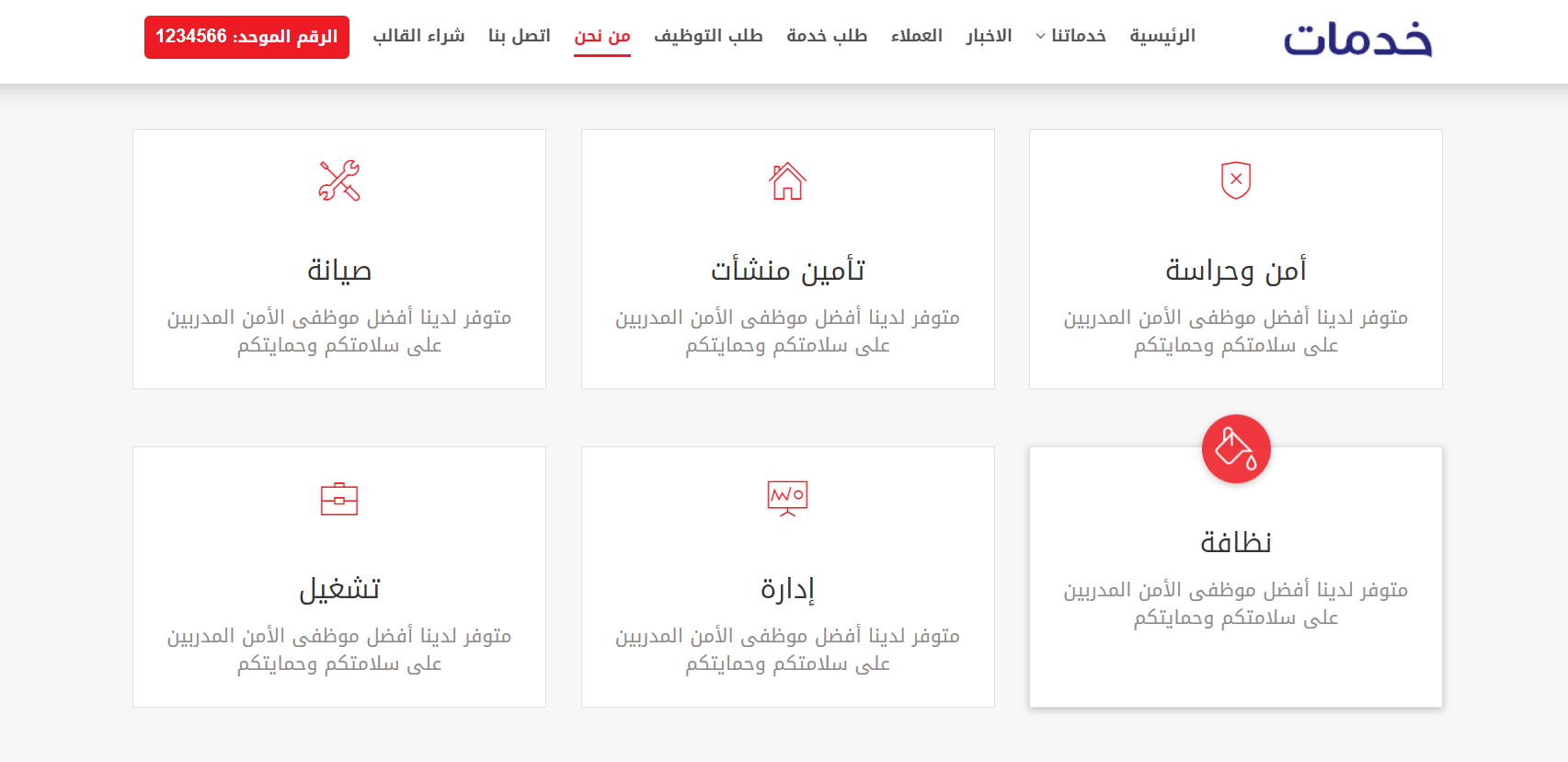 خدمات - قالب HTML متعدد الصفحات لشركات الخدمات والأمن والحراسة, القالب مميز بألوانه الهادئة وتركيزه على إظهار الخدمات بشكل فعل.