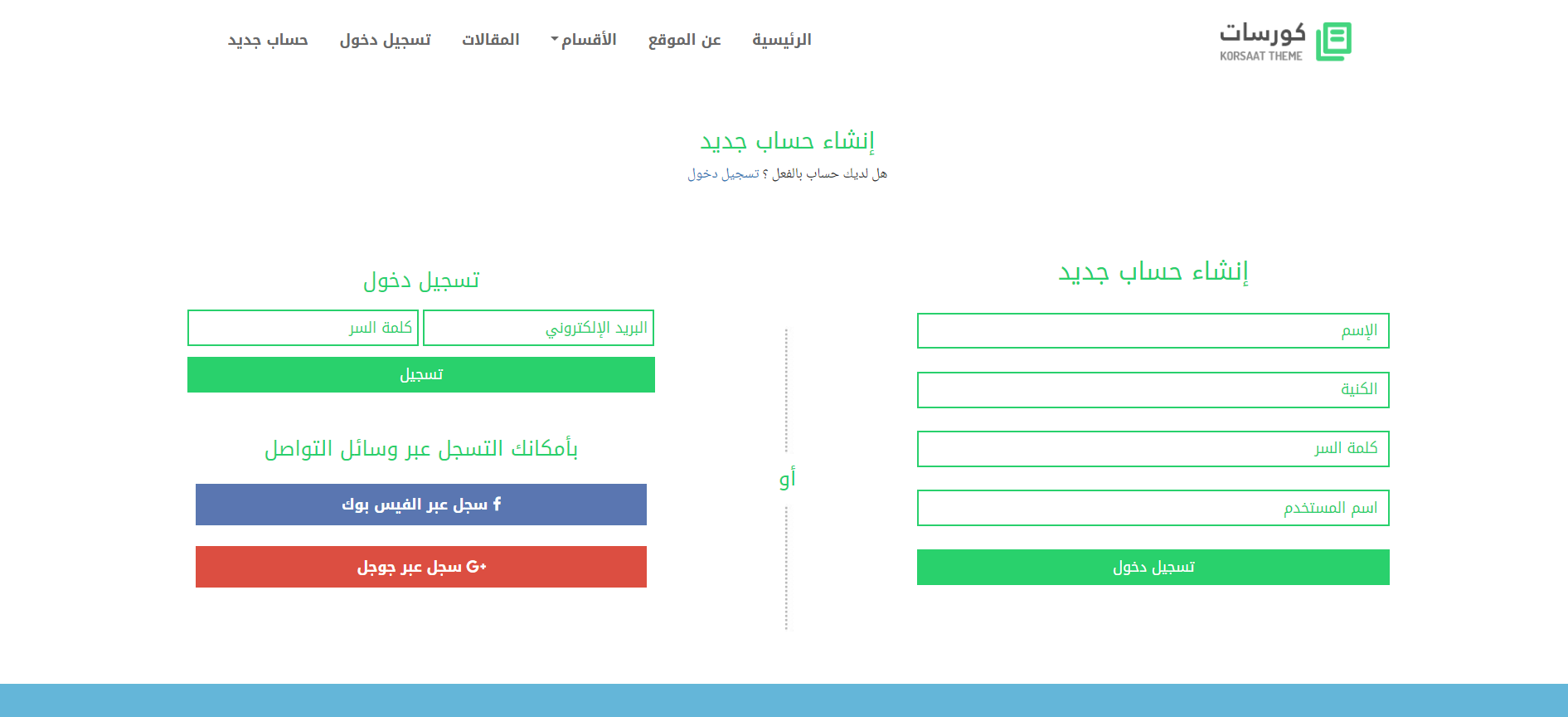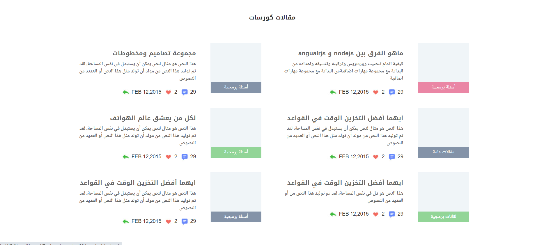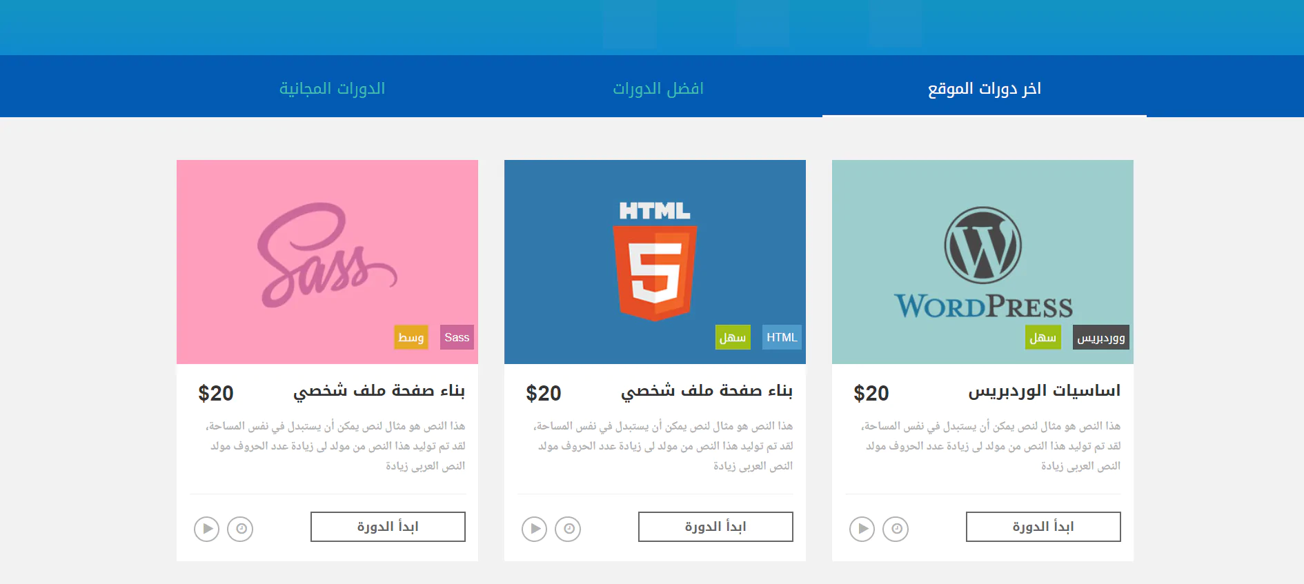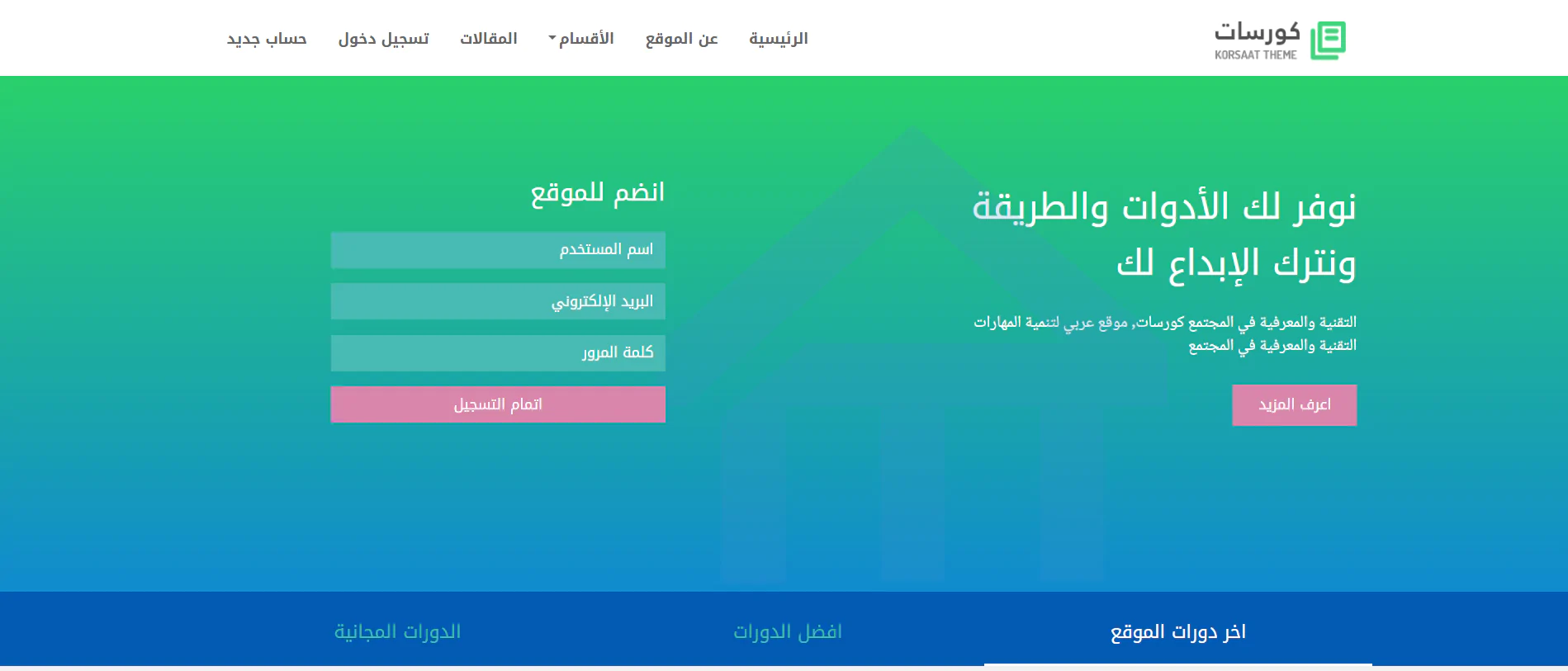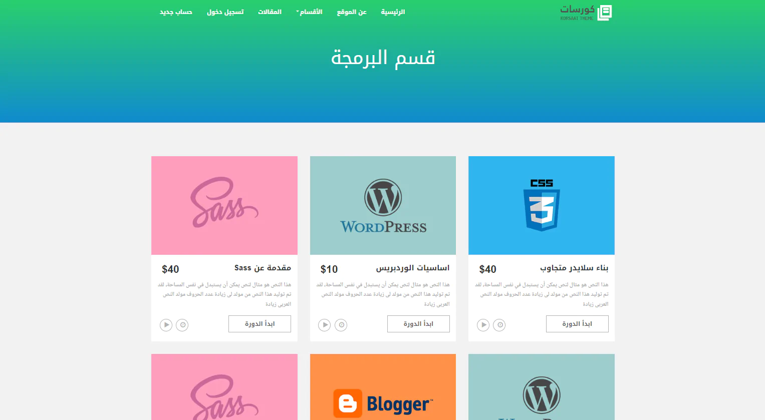 يحتوى قالب كورسات على الصفحات التالية