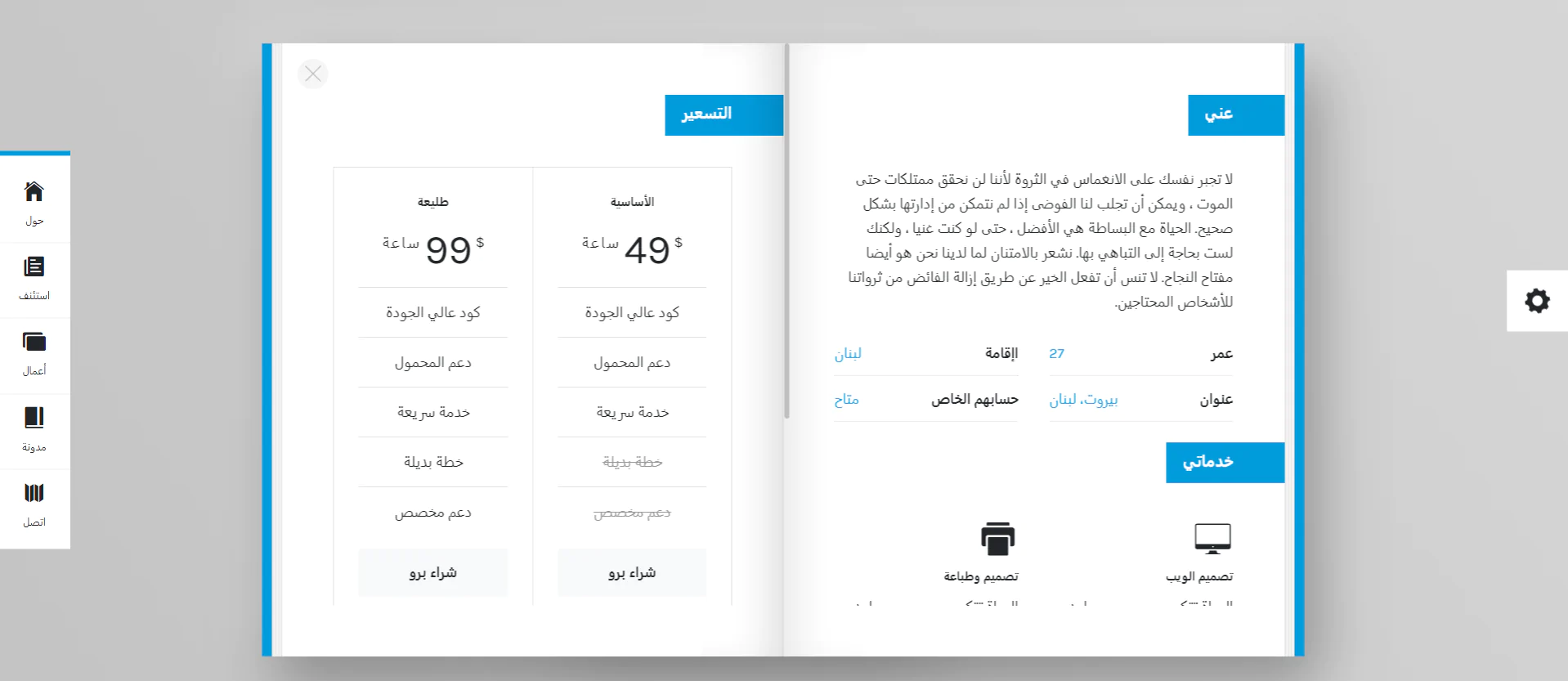 سى فى بوك - قالب مميز شخصى على شكل كتاب بألوان متعددة ولغات متعددة, القالب مميز بسرعة التصفح وشكله الجمالى وسهولة الاستخدام.