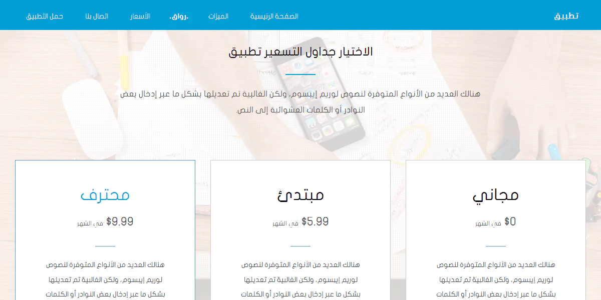 قالب الصفحة المقصودة - HTML5 / CSS3 هو الطريقة المثلى لتقديم تطبيقك في صفحة واحدة. يتميز القالب بتصميم فريد يلبي احتياجات شركات التصميم العربية والأفراد الذين يرغبون في عرض خدماتهم ومشاركتها بسهولة وحرية بشكل أنيق وجذاب.